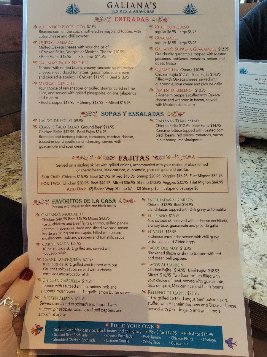 Welcome to Galiana's Tex Mex & Agave Bar, a culinary treasure nestled in Cypress, TX. This vibrant eatery masterfully blends the nuanced flavors of traditional Mexican cuisine with a contemporary twist. The star of the menu is undoubtedly the Molcajete For 2, a sizzling medley of chicken and beef fajitas, shrimp, grilled cheese, and house-made sauces, all served in a striking molcajete. Priced at US$42.95, it's a feast for the senses.